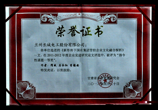 會(huì)議同期,甘肅省屬暨中央在甘企業(yè)創(chuàng)先爭(zhēng)優(yōu)活動(dòng)領(lǐng)導(dǎo)小組召開(kāi)會(huì)議并下發(fā)《關(guān)于表彰省屬暨中央在甘企業(yè)創(chuàng)先爭(zhēng)優(yōu)理論研討優(yōu)秀論文的決定》(甘國(guó)資創(chuàng)組[2012]9),對(duì)創(chuàng)先爭(zhēng)優(yōu)理論研討優(yōu)秀論文進(jìn)行了表彰。長(zhǎng)城電工系統(tǒng)三篇論文受到表彰。
