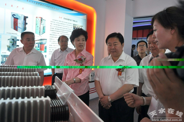 儀式結(jié)束后,參加開展儀式的領(lǐng)導(dǎo)走進(jìn)天水裝備制造業(yè)精品展覽館。在市委書記馬世忠,市委副書記、市長王銳,市委副書記、市政協(xié)主席楊維俊等市領(lǐng)導(dǎo)的陪同下,省委常委、副省長咸輝來到長城電工展覽臺(tái)前對(duì)室內(nèi)展廳展示的高低壓開關(guān)設(shè)備、高低壓電器元件等產(chǎn)品進(jìn)行了詳細(xì)察看。她一邊聽取講解員的講解,一邊詳細(xì)詢問了解產(chǎn)品。陪同的市委書記馬世忠向咸輝副省長簡要介紹了長城電工及情況市場(chǎng)開拓情況。