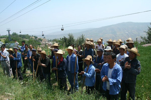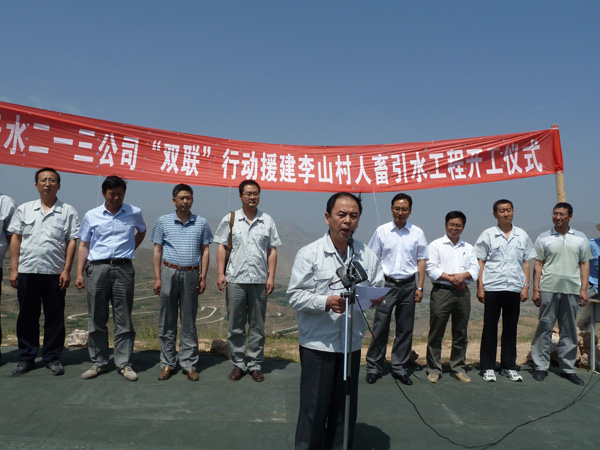 武山縣政府相關(guān)部門負(fù)責(zé)人、二一三公司援建工作人員代表一行10人和李山村部分村民參加了當(dāng)天的引水工程開工儀式。 |