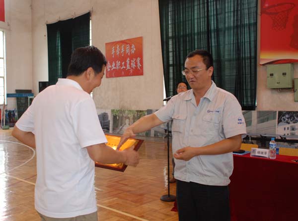 (長城電工副總經(jīng)理毛建光為獲獎代表隊頒獎)