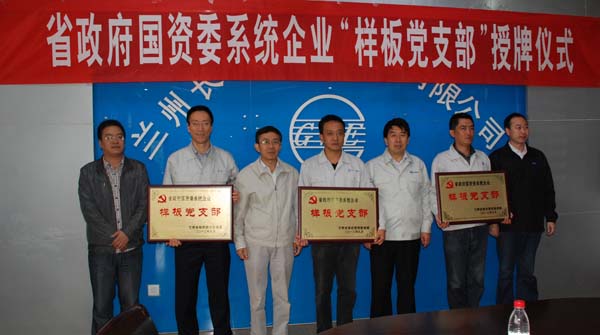 授牌儀式上,省政府國資委黨建處處長張烈祖一行三人,代表省政府國資委黨委為長城電工所屬天水長城開關(guān)廠有限公司箱殼制造部黨支部、天水二一三電器有限公司裝配分廠黨支部和天水長城果汁集團(tuán)公司隴南公司黨支部頒發(fā)了“省政府國資委系統(tǒng)企業(yè)樣板黨支部”牌匾。
