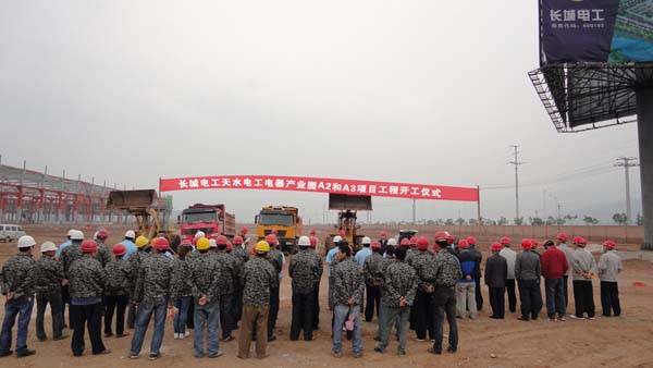 2013年5月15日,長(zhǎng)城電工天水電工電器產(chǎn)業(yè)園餐飲文化中心(A2)和職工宿舍樓(A3)項(xiàng)目工程開(kāi)工儀式在長(zhǎng)城電工天水電工電器產(chǎn)業(yè)園舉行。長(zhǎng)城電工總經(jīng)理張希泰參加并做重要講話(huà)。