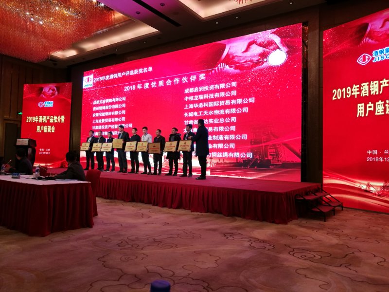 12月13日,酒鋼在蘭州組織召開(kāi)了“新產(chǎn)品推介暨用戶(hù)座談會(huì)”,酒鋼股份公司部分領(lǐng)導(dǎo)和來(lái)自全國(guó)300余家代理商以及用戶(hù)代表參加了會(huì)議。會(huì)上公司獲得酒鋼 “2018年度優(yōu)質(zhì)合作伙伴獎(jiǎng)”。