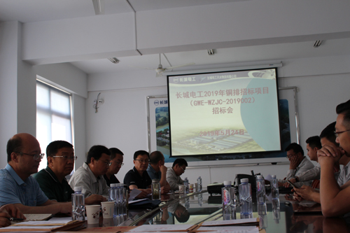 2019年5月24日,長城電工在物流公司會議室組織召開了2019-2021年度銅排招標會。招標工作小組3人、監(jiān)標1人、長城電工招標專家?guī)祀S機抽取了5位評標專家、8家投標單位代表及工作人員共計20余人參加了會議。